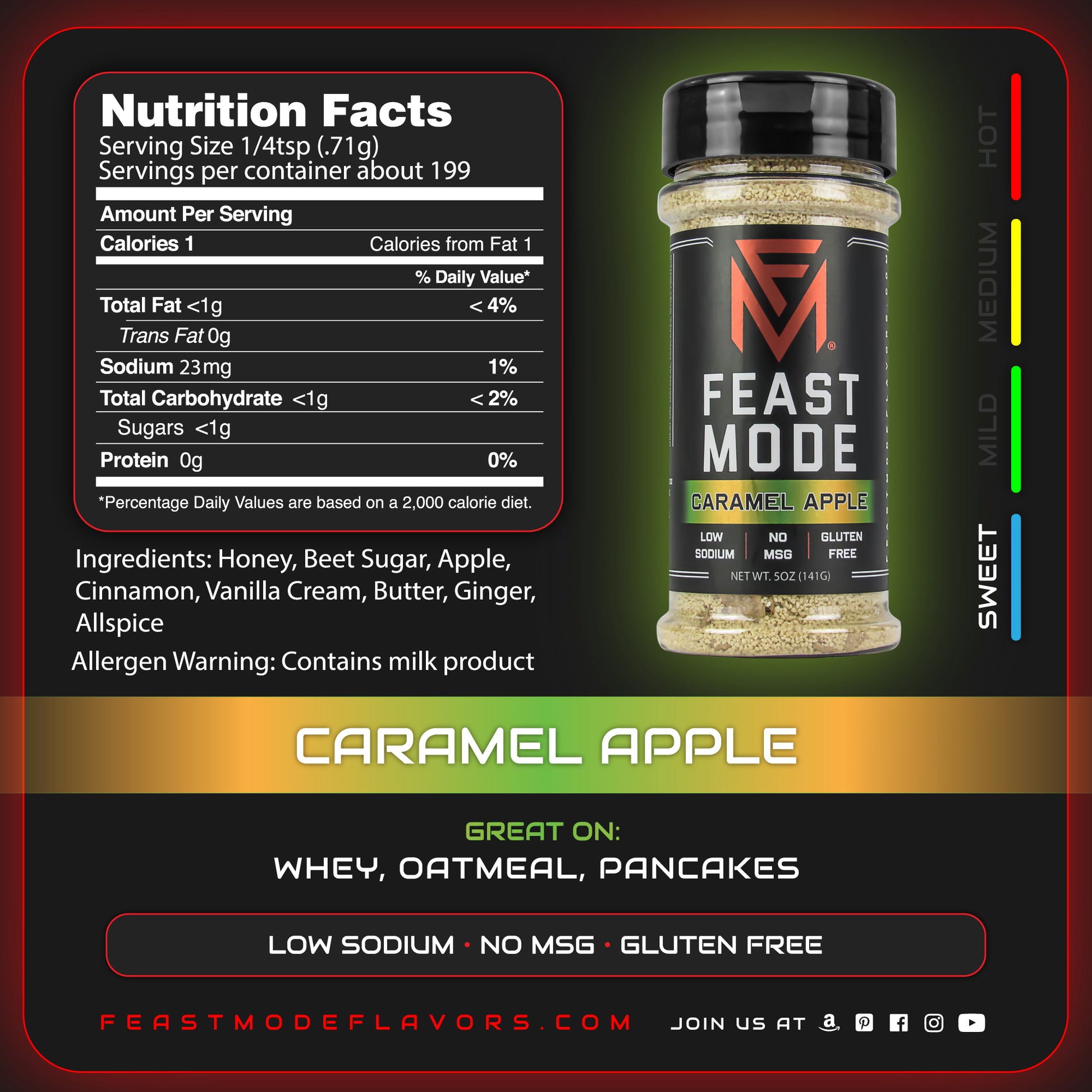 Feast Mode flavors are low sodium, low calorie, and made without MSG, fillers, binders, or artificial dyes, so you get bold flavor without the guilt.