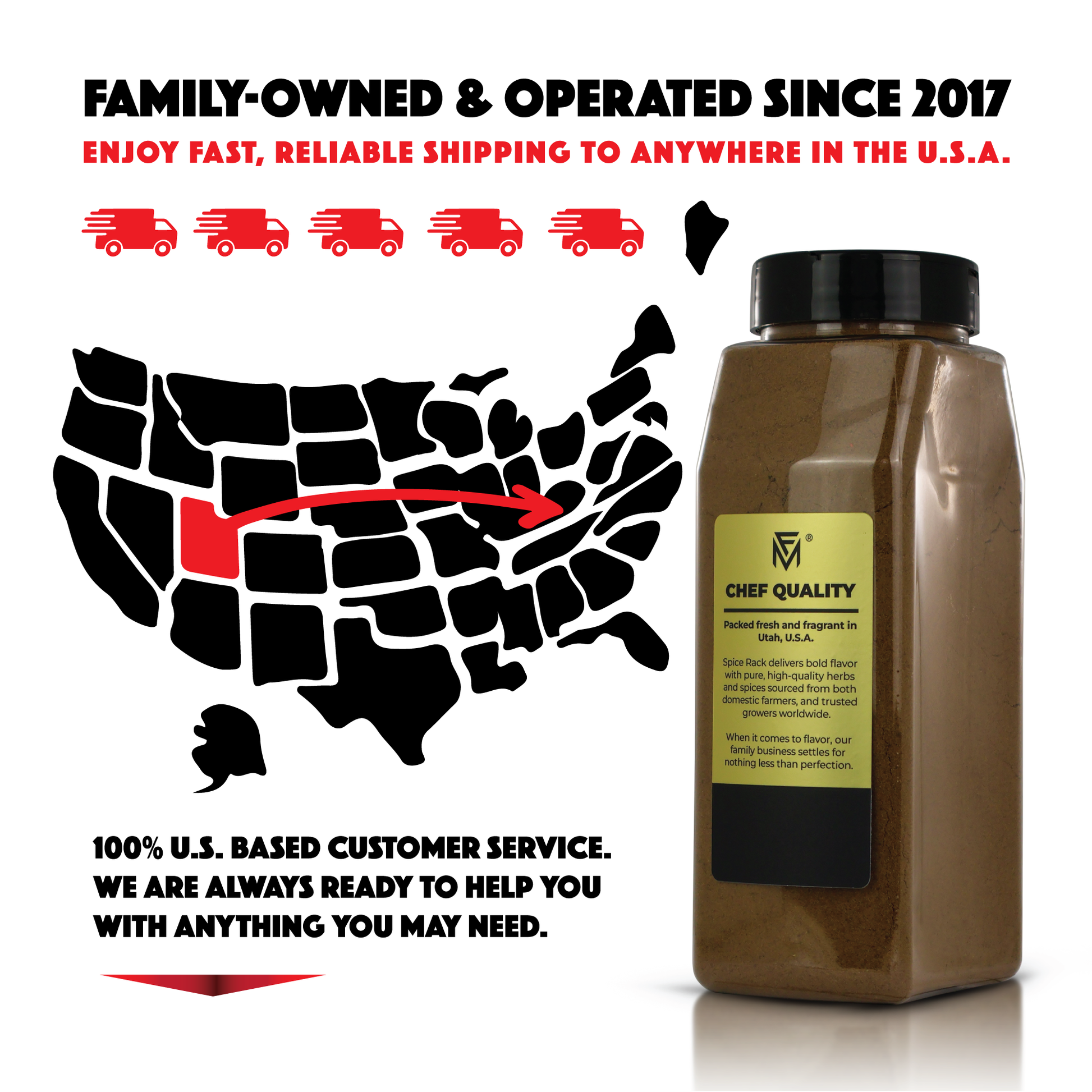 We source only the finest, most trusted ingredients from top-tier American farmers and select global suppliers. Every Spice Rack product is culinary grade, carefully inspected, and packed fresh in Utah to ensure unbeatable flavor, freshness, and purity in every bottle.