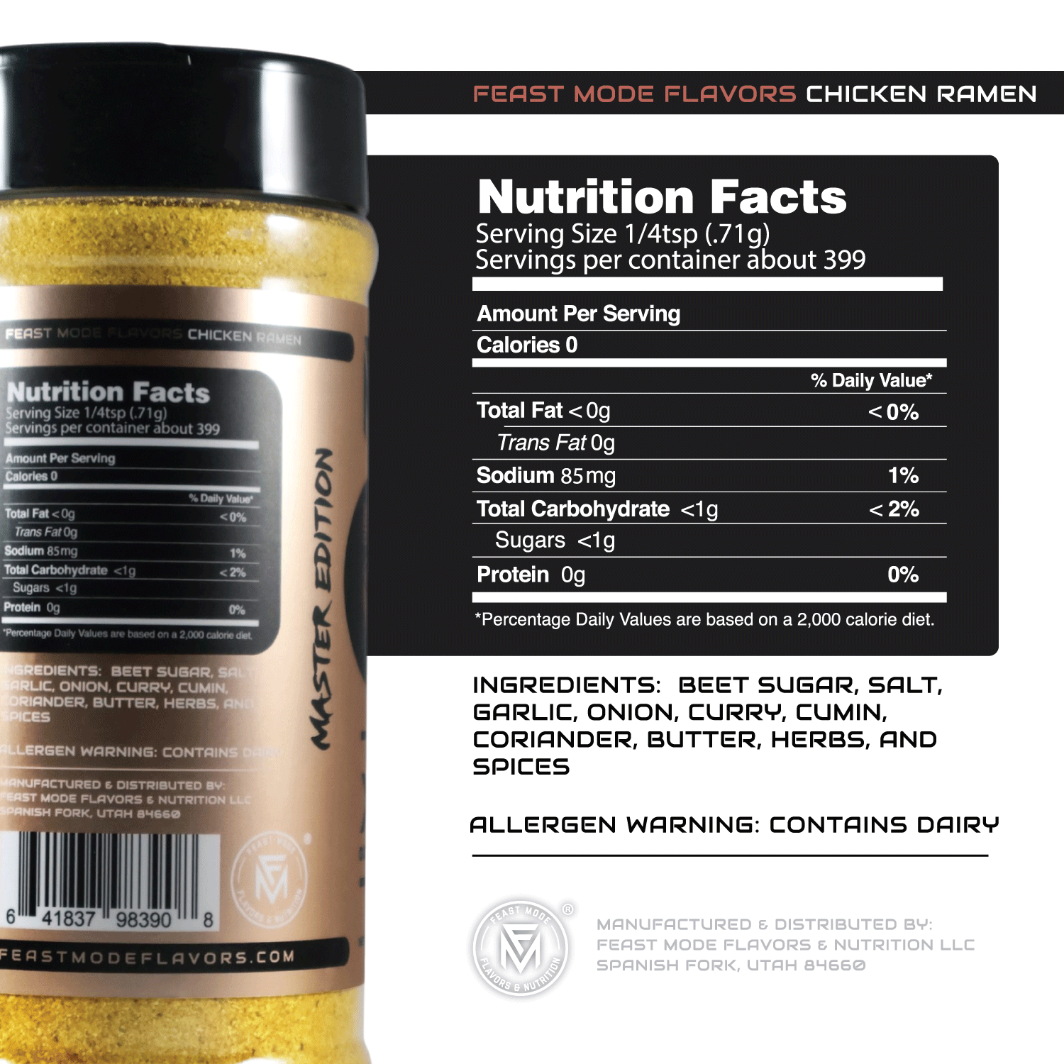 As a Utah-based, family-owned company, Feast Mode Flavors is proud to create handcrafted blends that fuel healthy lifestyles and satisfy serious appetites. The Master Edition line is our premium offering—bigger bottles, bolder flavors, and zero compromises.