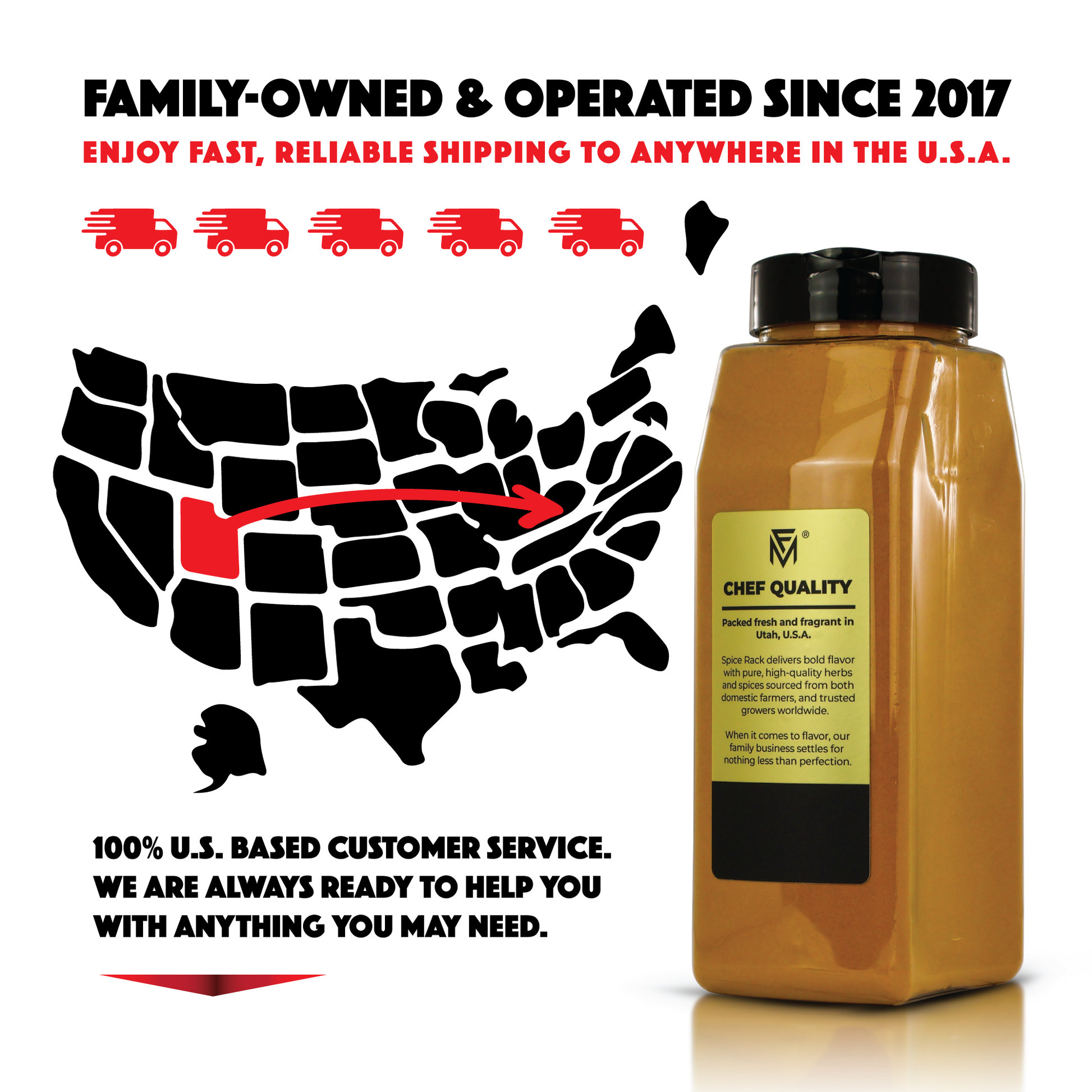 We source only the finest, most trusted ingredients from top-tier American farmers and select global suppliers. Every Spice Rack product is culinary grade, carefully inspected, and packed fresh in Utah to ensure unbeatable flavor, freshness, and purity in every bottle.